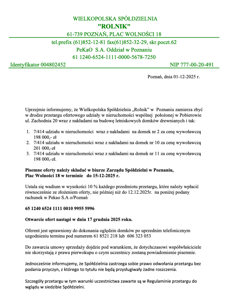 1.     Oferujemy w naszej siedzibie do wynajmu lokale biurowe o powierzchni           od 11m2 do 30m2.